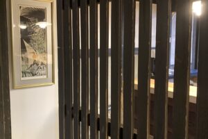 まずはお寺や伝統的な和の建物でよく見る「縦(横)繁障子」。(上の写真)縦長横長に細かくマス目をきった繊細な障子です。腰板と言って下に板がついているのも昔のお家では多いパターンですね。