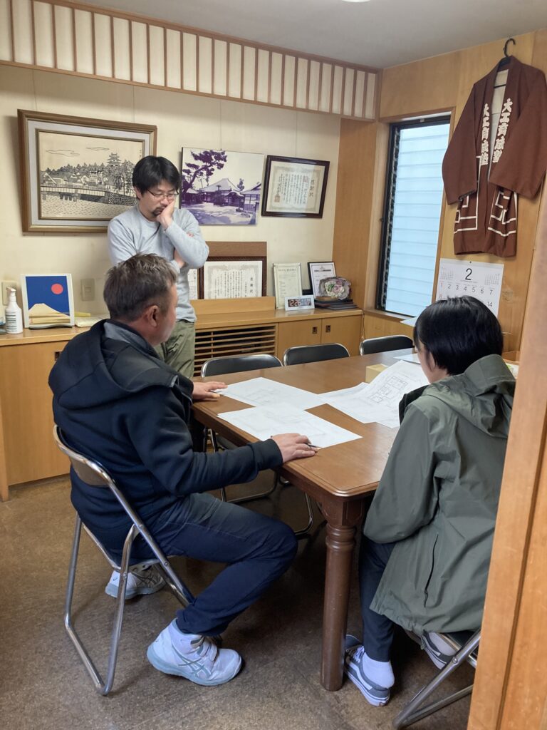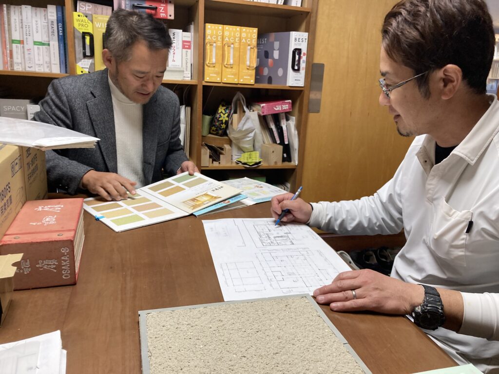 いつもキレイに左官壁を仕上げてくれる、原左官工藝さんも打合せのためご来社。