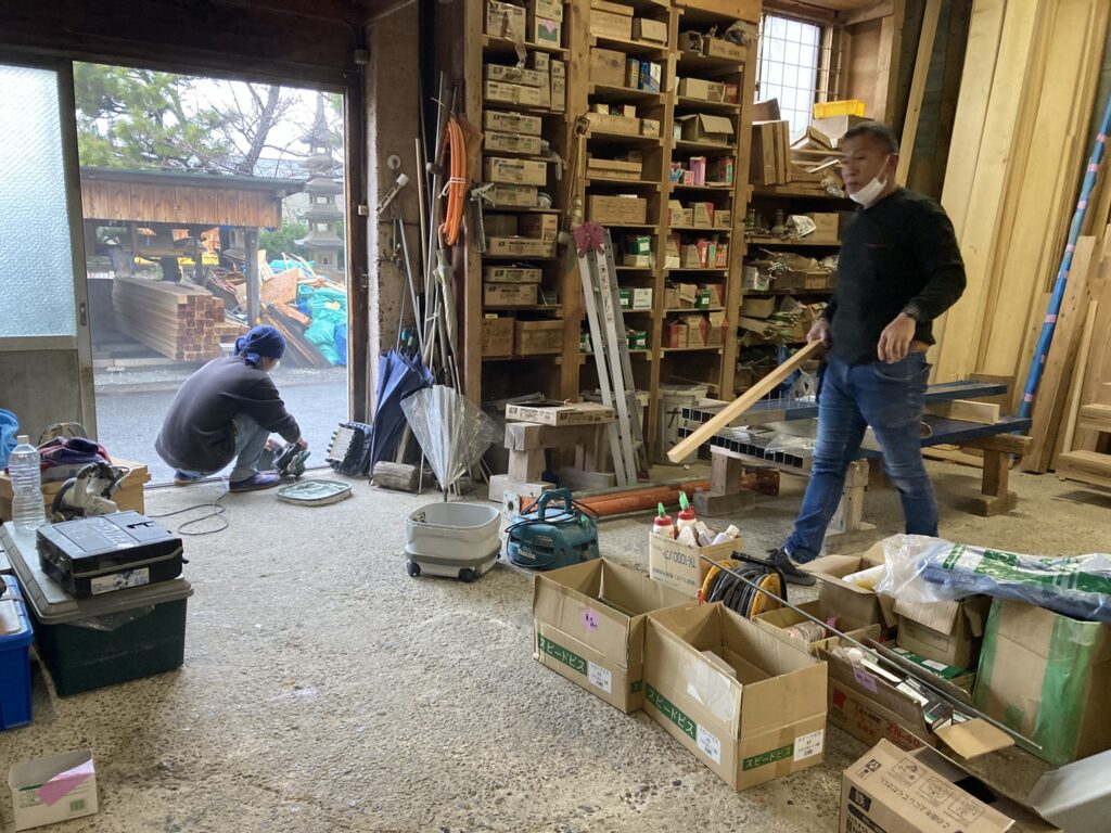 担当の大工さん達が現場から引き揚げてきて片付けをしていました。
