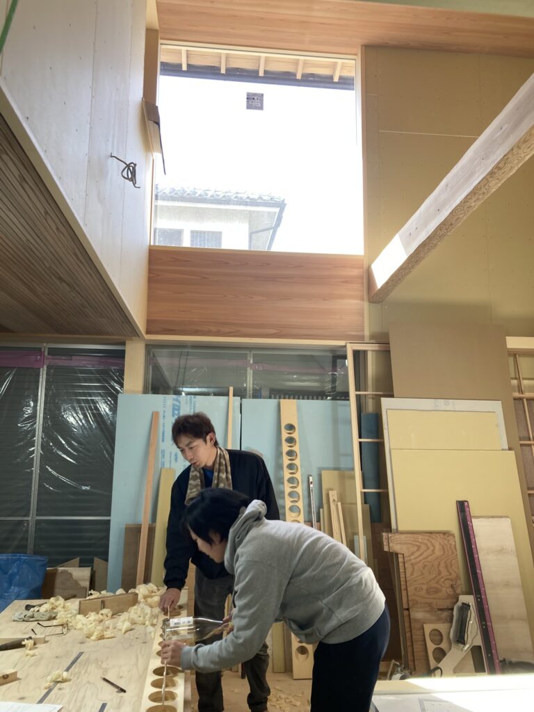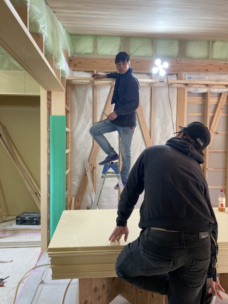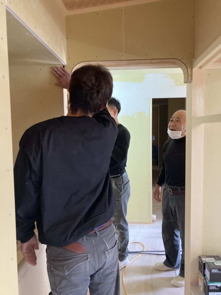 こちらを担当させていただいている大工さんは勤続13年の堺くんと、大彦の大阪府内の現場を担当していただいている腕利きの下中さんチーム。