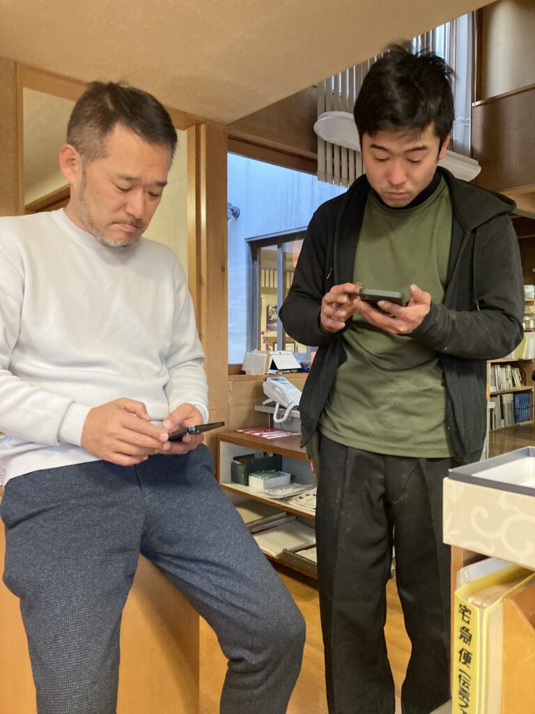 LINEを送りあっている様子ですが、本当の親子のように微笑ましかったのでつい撮ってしまいました。