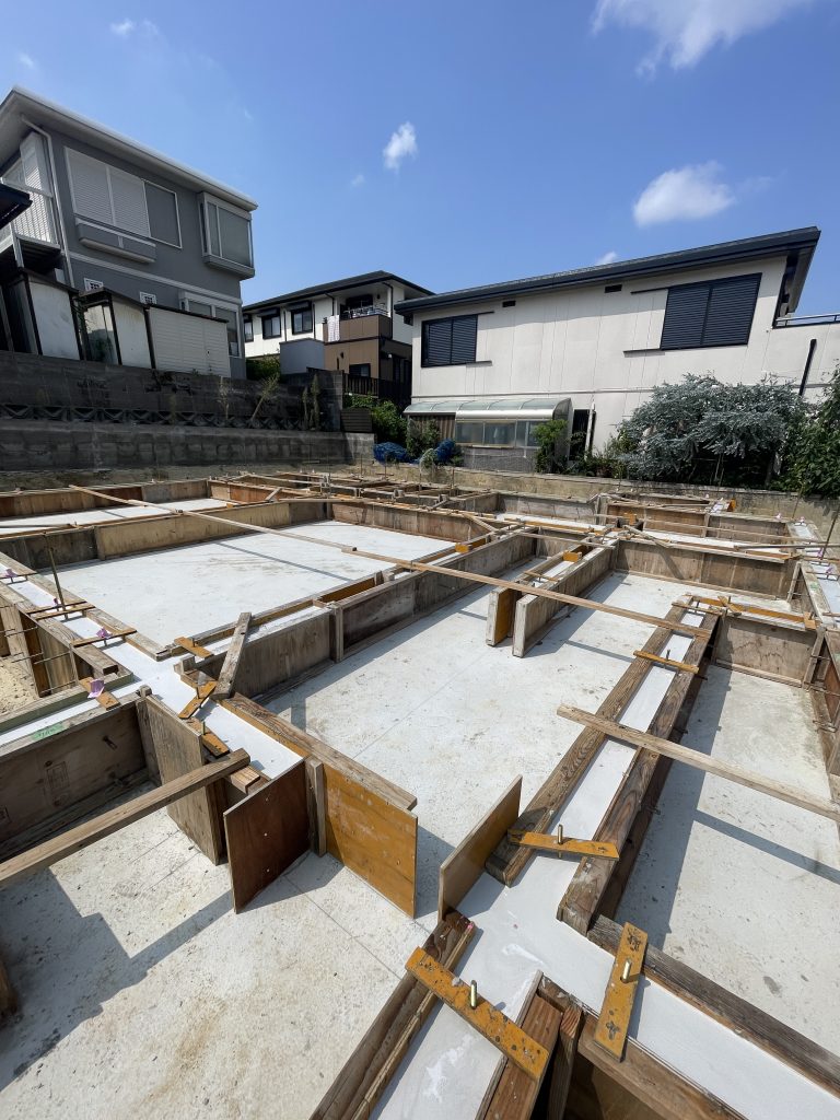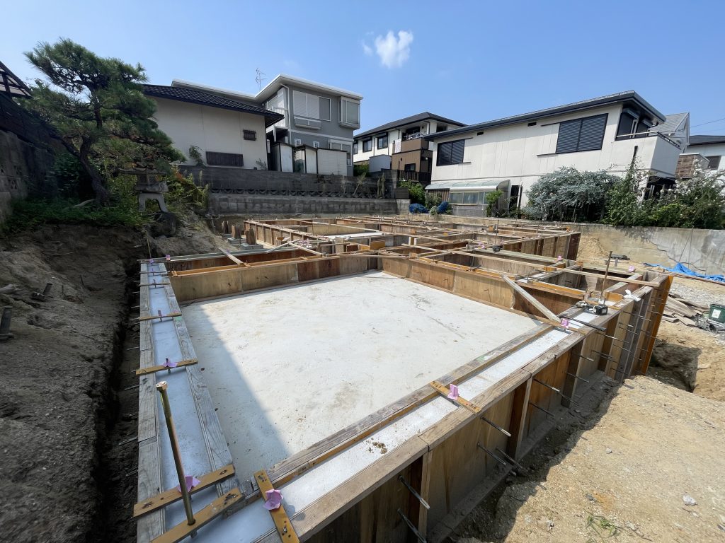 8月上旬の杭打ち(地盤改良工事)から始まって、基礎屋さんが一生懸命仕事をしてくれた甲斐もありまして、
