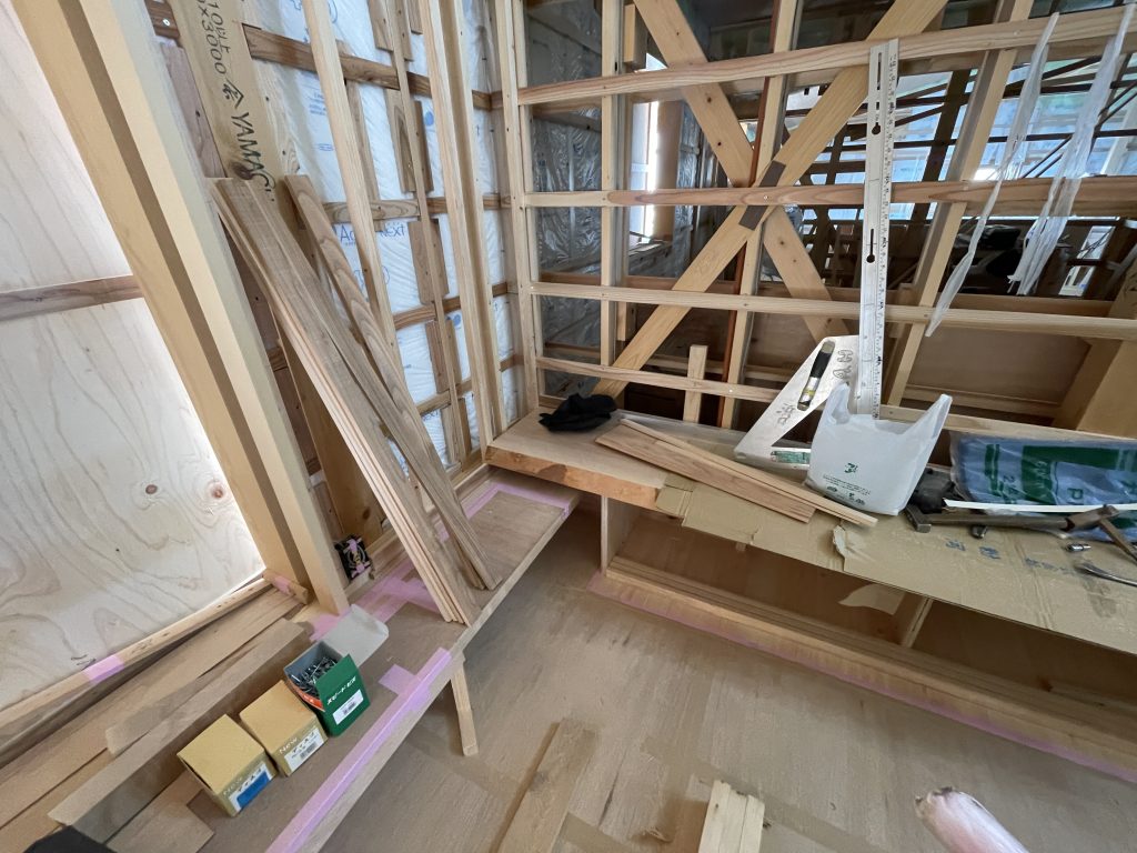 和歌山市北部のA様家。大工工事ももう少し。色々な所の形が出来てきて、どんどんお家らしくなっていまして、現場に行くのも、とても楽しい時期。
