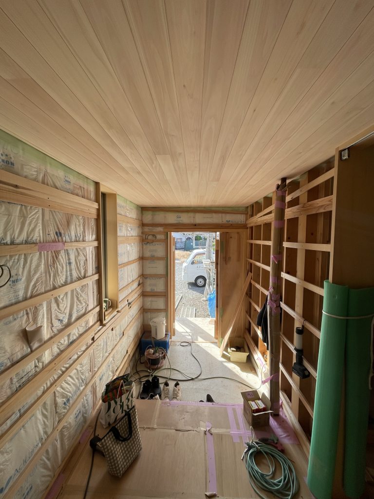まあそれは置いといて、もちろんボードの上にクロスや左官塗の白い天井も美しくて大好きですが、やっぱり木の板張り天井には、それしか出せない魅力がありますね。