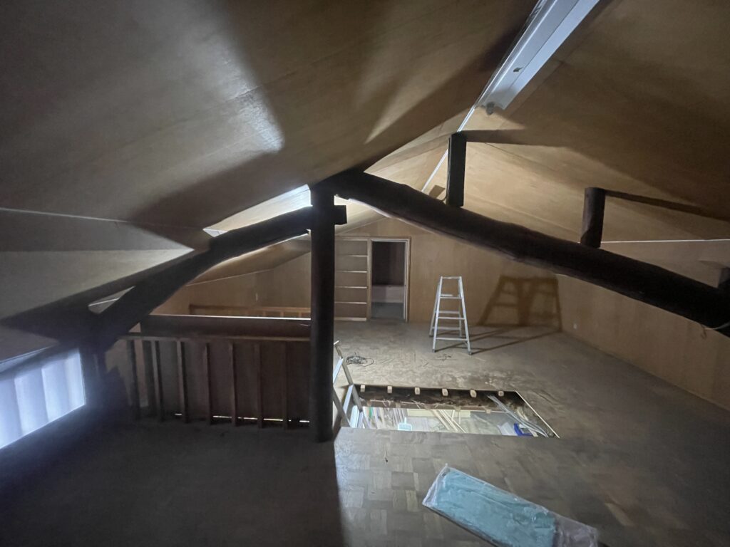 平屋ですが、大きなお家ですから、このような小屋裏ロフトもありまして、こちらも直していきます。なんかこういう空間ってちょっとワクワクしませんか。ハイジの寝室みたいですし。