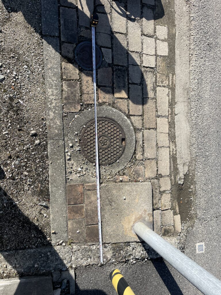 申請には道路と敷地の関係はかなり気を遣う所で、敷地でしっかりと測って確認して、お役所へ事前折衝へ行ったりと、地味な作業ではありますが、ここをしっかりやっておかないと後で大変なことになりますからね。