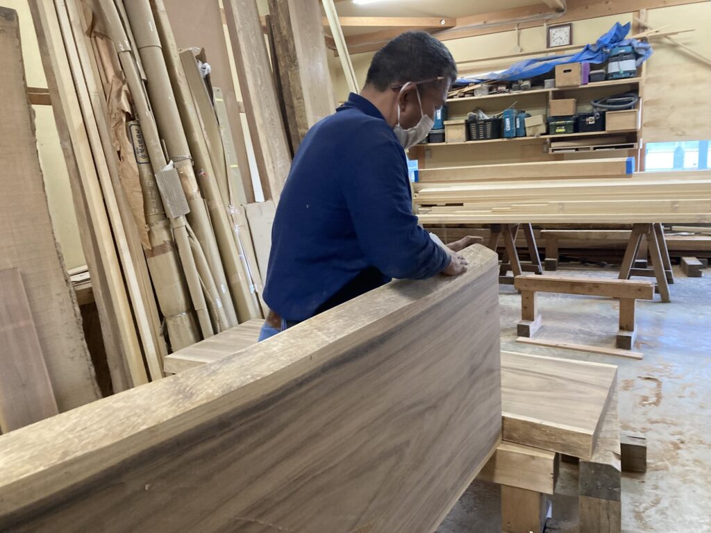 色、木目を見ながら、張った時の美しさも考えます。これらもひと手間なんですよね。