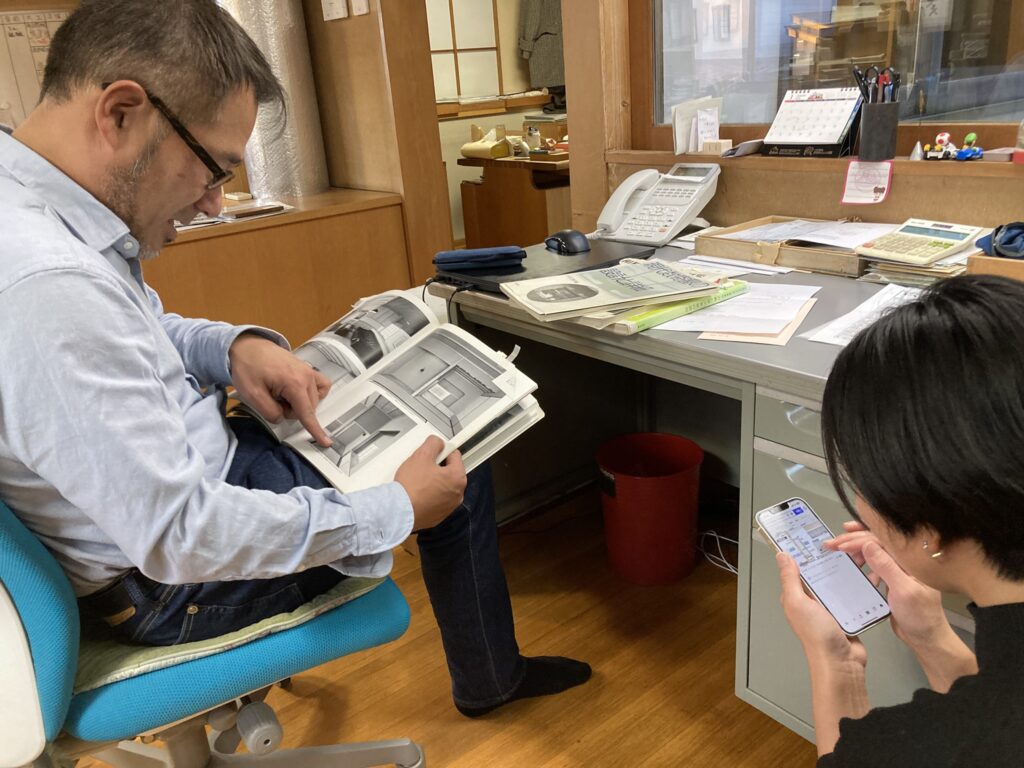 お茶室の書籍を見たり、大工さんとも相談しながら進めています。