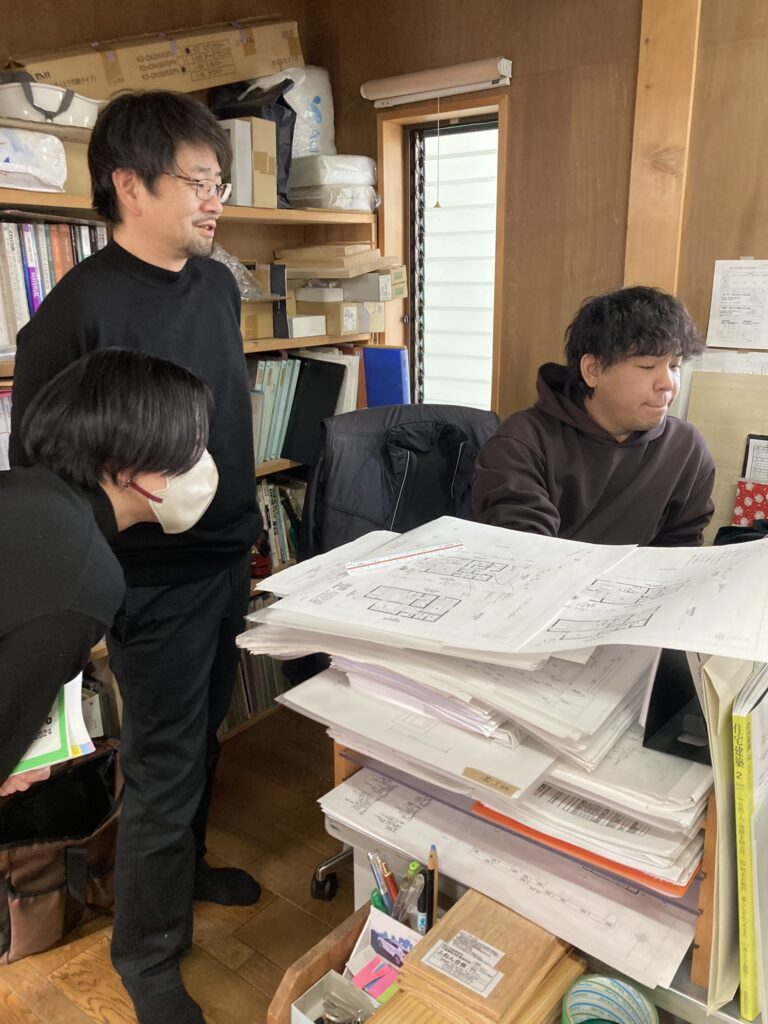 建築確認申請書を作成中の設計担当たちに注目したいと思います!