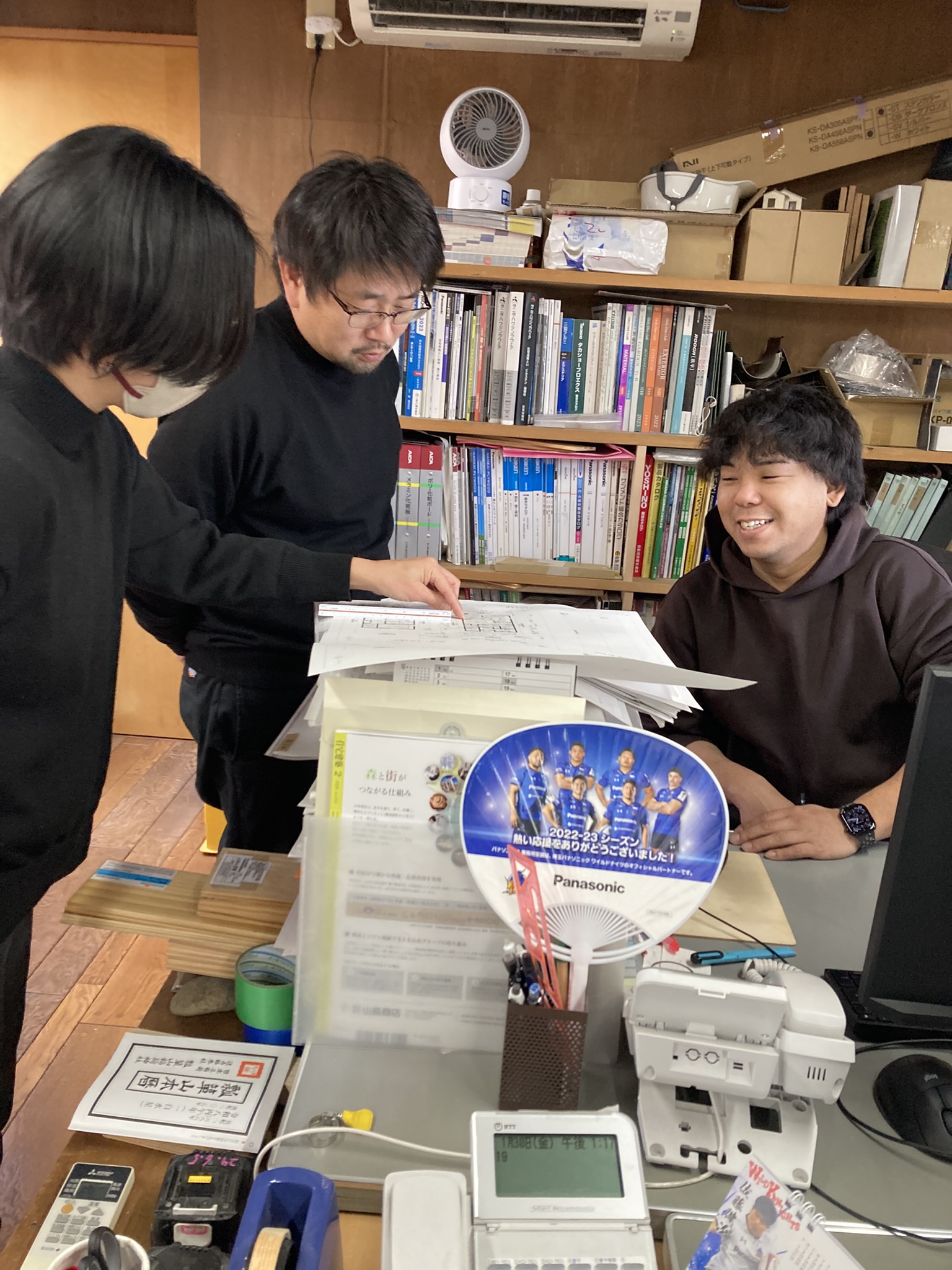 設計担当3人で真剣な表情してます・・・