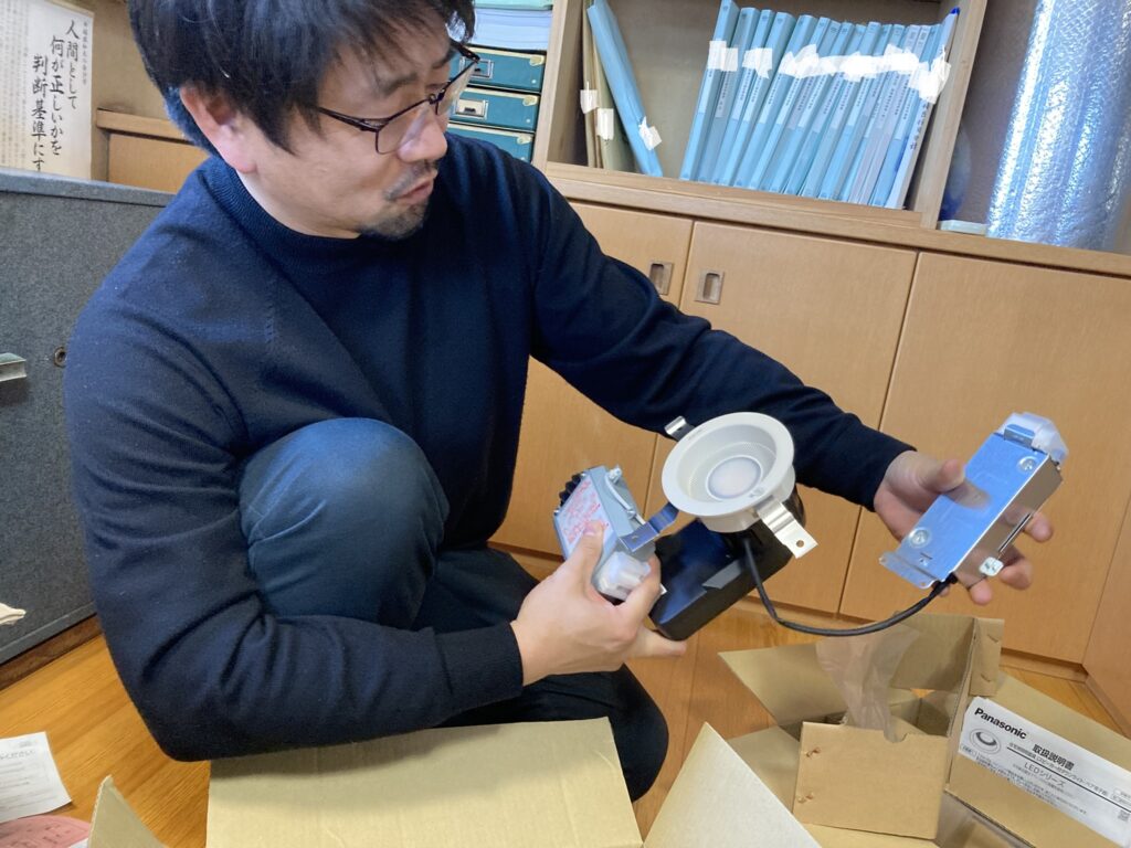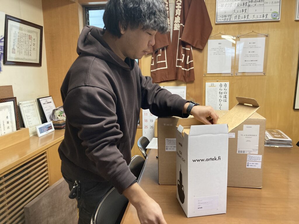 で、事務所に続々と注文した照明器具が到着し始めます。