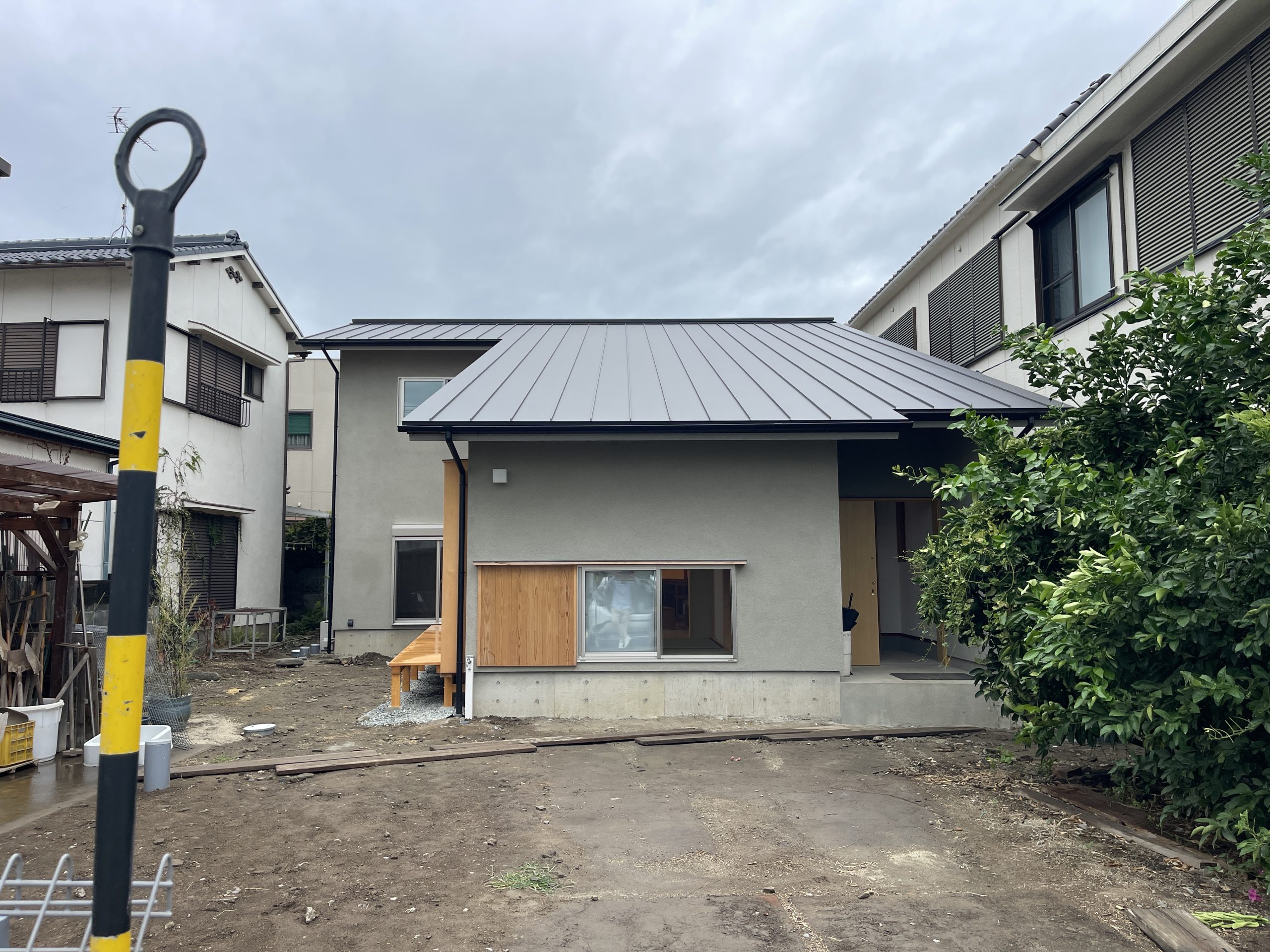 外構はまだなので、完成写真はまた後日webサイトでご紹介させてもらいますが、お客様のご家族のイメージ通りのやわらかなやさしいお家が出来ました。