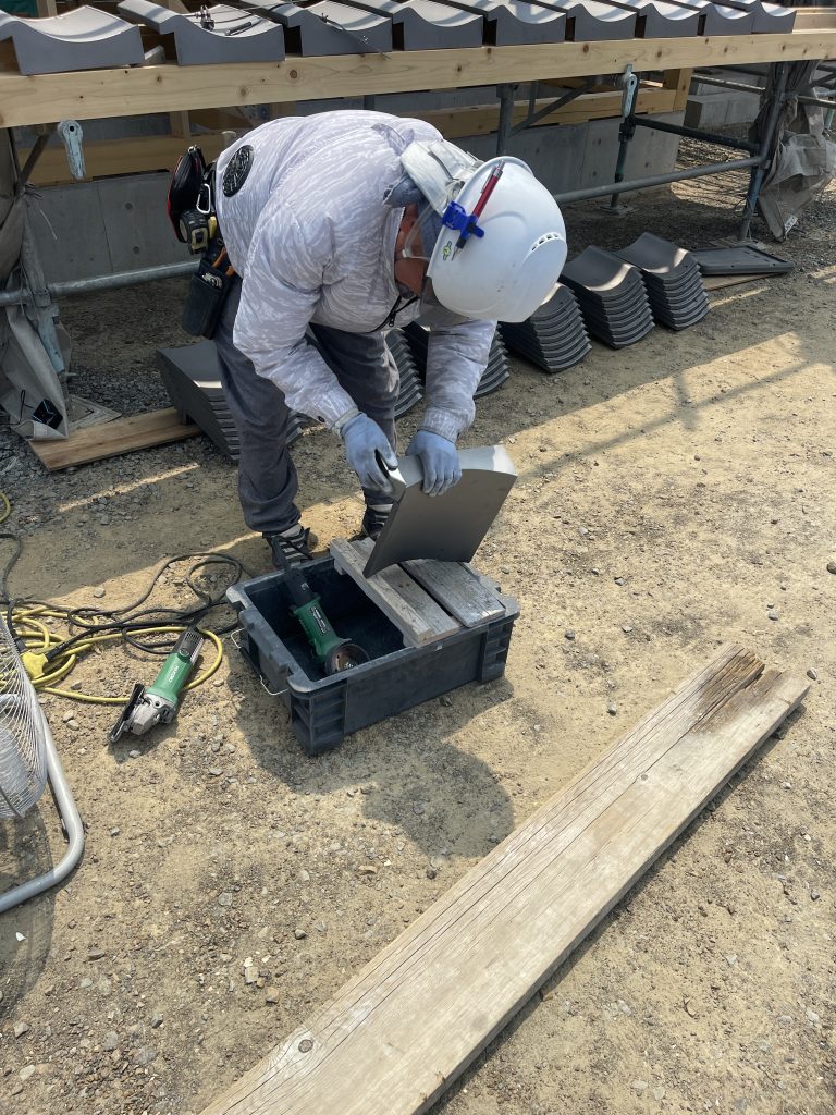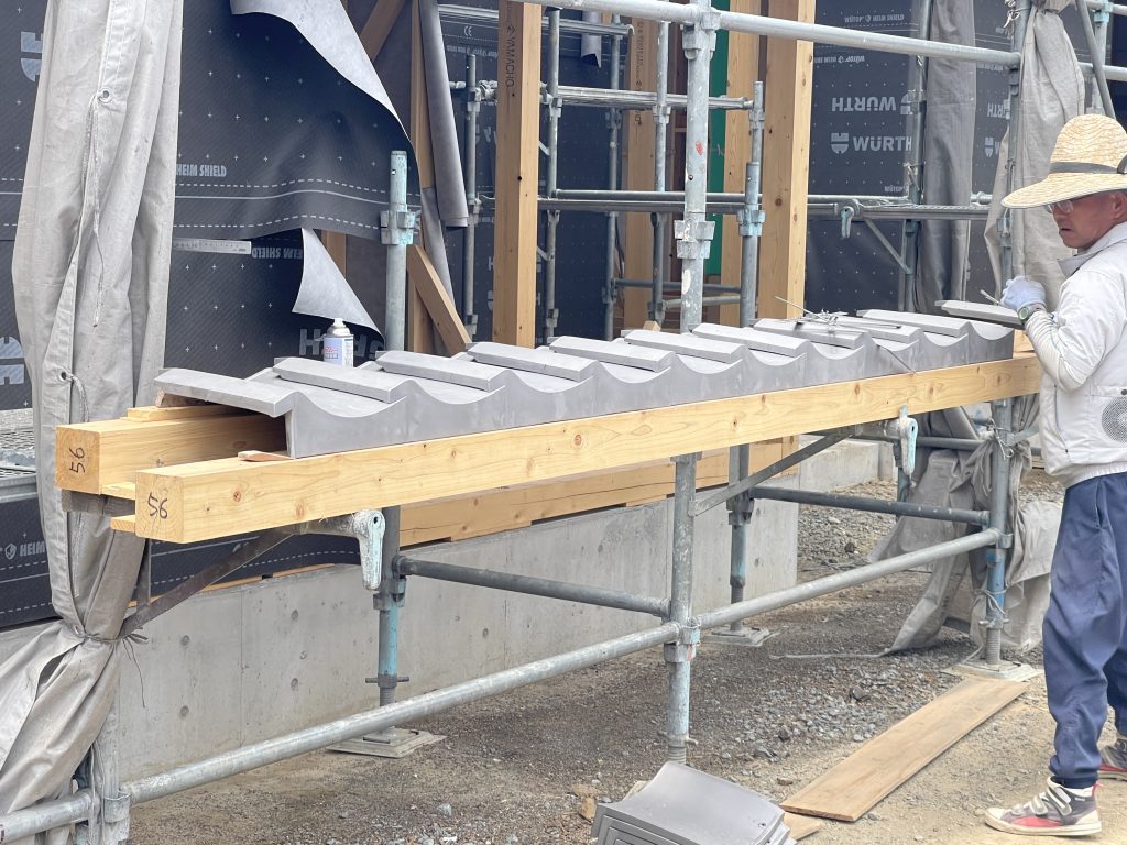 瓦職人さんが一枚一枚手で加工しまして(厳密に言うと、上の写真の瓦を加工しているわけではなくて、軒の瓦を加工しているんですが、ご勘弁ください)