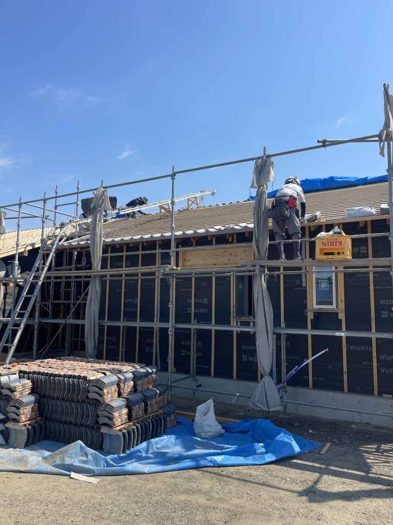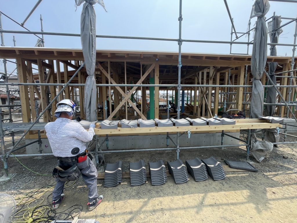とっても丁寧に仕事をしていただきました。《こちらの屋根は日本瓦「一文字葺き」というもの。金属板葺き(ガルバなど)でも、他の物でも、しっかりと屋根職人さんが調整して綺麗に仕上げていきます》