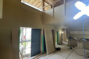 はい。今日は印南町のK様家から。 大工さんの工事もあと…